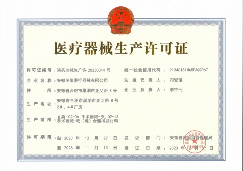 喜報!熱烈祝賀茂康醫(yī)療器械取得《生產(chǎn)許可證》